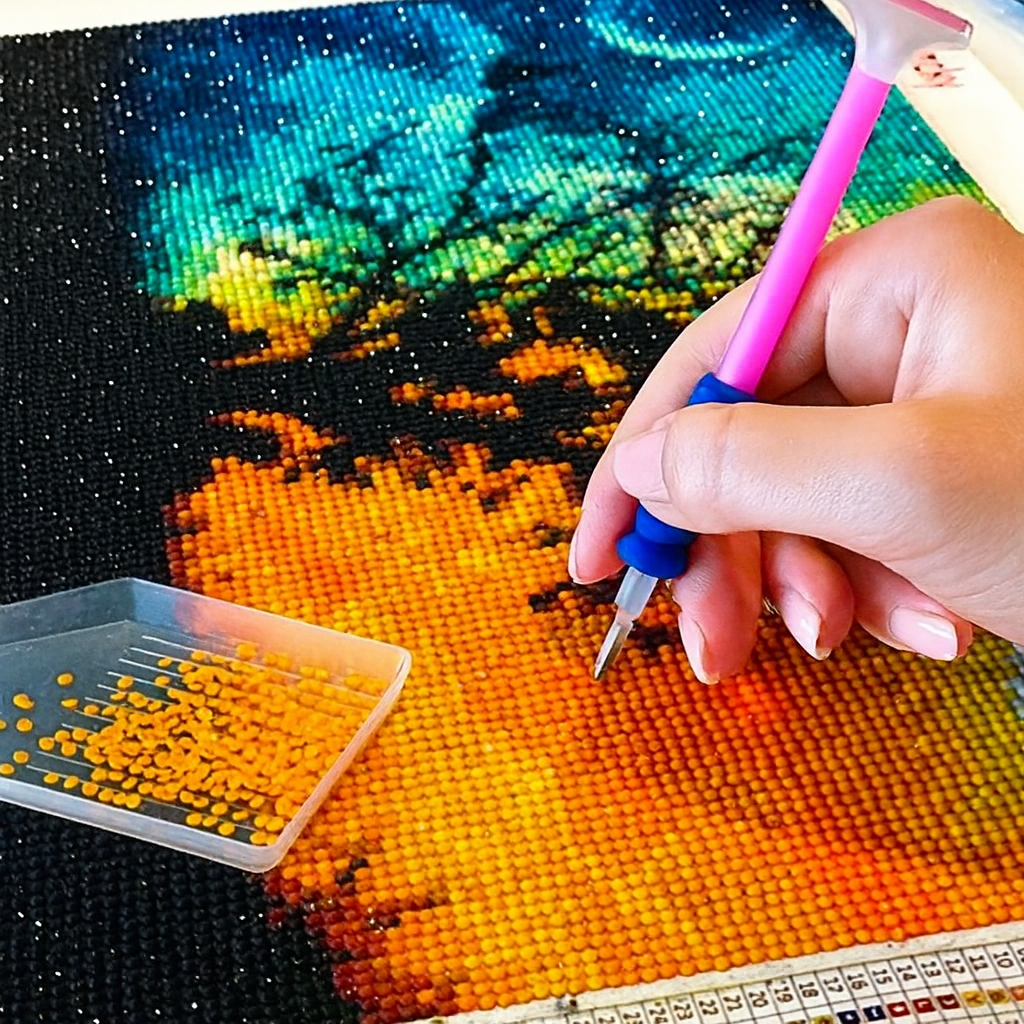 Diamond painting is a relaxing, meditative craft that helps quiet stress and anxiety, allowing you to focus on the soothing rhythm of placing each sparkling diamond.