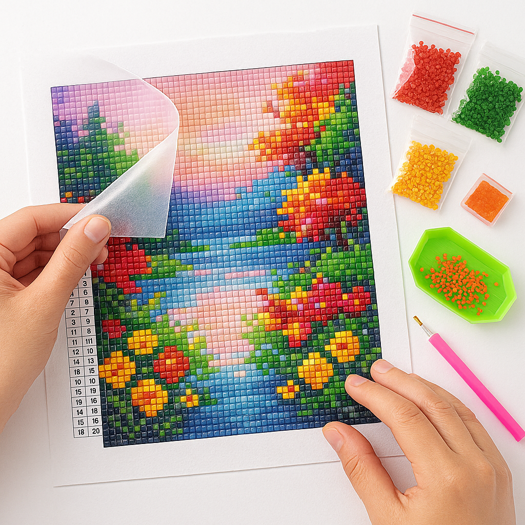 Diamond painting is a relaxing, meditative craft that helps quiet stress and anxiety, allowing you to focus on the soothing rhythm of placing each sparkling diamond.