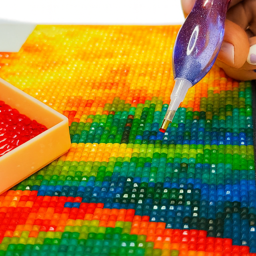 - Dip & Pick – Use the applicator pen with wax to pick up each sparkling diamond.